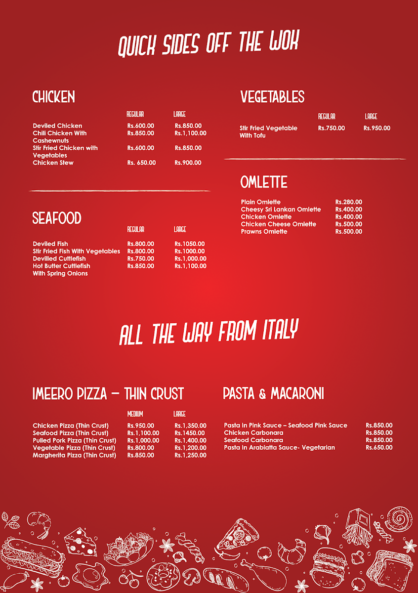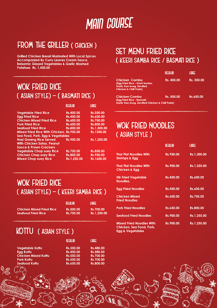 You’ll find a mix of hearty local favorites and popular international options, such as Pork Kottu, Chicken Egg Soup, and Italian-inspired Chicken Pasta Carbonara. Light bites and main courses are balanced with flavorful rice dishes like Nasi Goreng Chopsi Rice and Mongolian Rice, alongside shareable options like Chicken Pizza. For those moments when a refreshing drink enhances the experience, choices like creamy Chocolate Milkshakes and smooth Iced Coffee provide a simple, comforting finish.