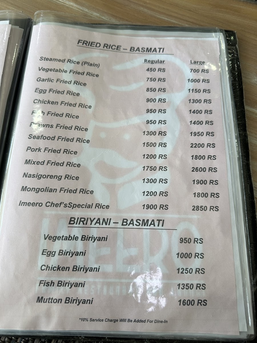 Imeero Family Restaurant & Lounge Menu